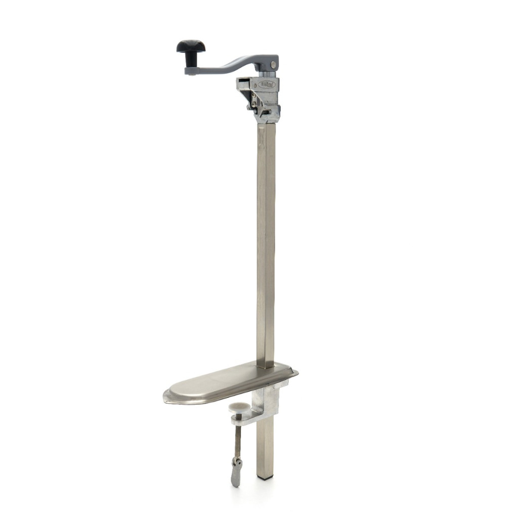 Ez a nagy teherbírású konzervnyitó szilárdan rögzíthető bármely stabil munkapadhoz. A konzervdobozt a penge alá helyezi, és az óramutató járásával megegyező irányba forgatva a fogantyút átvágja a tetejét. Tökéletes a professzionális konyhákban történő többszöri használatra. Egyszerű mechanikus kialakításának köszönhetően nincs szükség áramra - csak egyenletes forgatásra a hatékony eredmény érdekében.