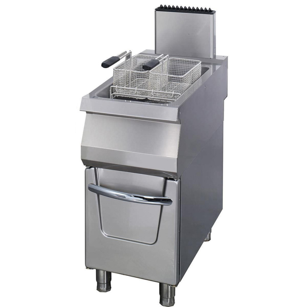 Ez a nagy teljesítményű fritőz gázzal (LPG vagy földgáz) működik, és 110 és 190⁰C közötti hőmérsékletre állítható. Ergonomikus és higiénikus kialakítása miatt kiválóan használható készülék. A biztonság érdekében hőérzékelővel ellátott gázbiztonsági szelep van beépítve. Ezenkívül a fritőz gyújtólámpával van felszerelve. A fritőz a sütőolaj könnyű eltávolításához leeresztő csapot is tartalmaz. A mélysütő alapfelszereltségként rozsdamentes acél fedővel és sütőkosárral rendelkezik.