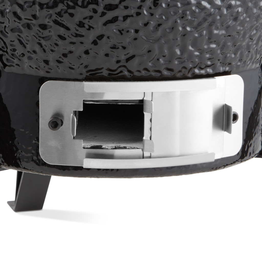 Az alján lévő állítható levegőellátás és a fedélen lévő légkivezetés optimális légkeringést biztosít. Segítségével beállíthatja az ételek hőmérsékletét. Az állítható grilllapok szintén előnyösek, mivel lehetővé teszik, hogy az ételeket az ideális magasságban helyezze el a tűz fölött. A fal és a tűztál kerámia, ami biztosítja, hogy a kamadót ne befolyásolja a magas hőmérséklet vagy a hőmérsékletkülönbség.