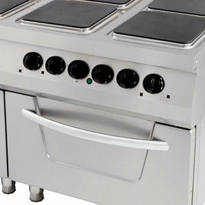 Prémium tűzhely - 6 égő - Elektromos - Háromszemélyes egység - sütővel - 90cm mélységű