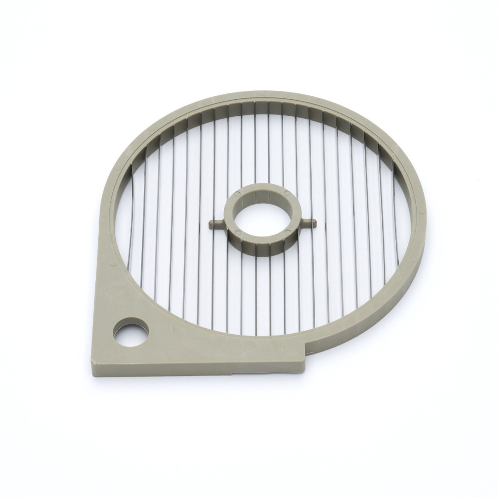 Ez az alumíniumból készült 8mm-es hasábburgonya szeletelő a VC450-es zöldségszeletelőhöz alkalmas. Ezzel a szeletelővel hosszú, vékony csíkokra vághatja a burgonyát. Ahhoz, hogy a burgonyát hasábburgonyává szeletelje, ezt a hasábburgonya szeletelőt a 8mm-es normál szeletelővel kell kombinálni. A szeletelőt a zöldségszeletelőbe lehet behelyezni. Ha végzett, a szeletelőtárcsát kiveheti és meleg, szappanos vízzel tisztíthatja. Ügyeljen arra, hogy a szeletelőtárcsát alaposan megszárítsa és a megfelelő karbantartás érdekében egy kis növényi olajjal kenje be a vágókorongokat.
